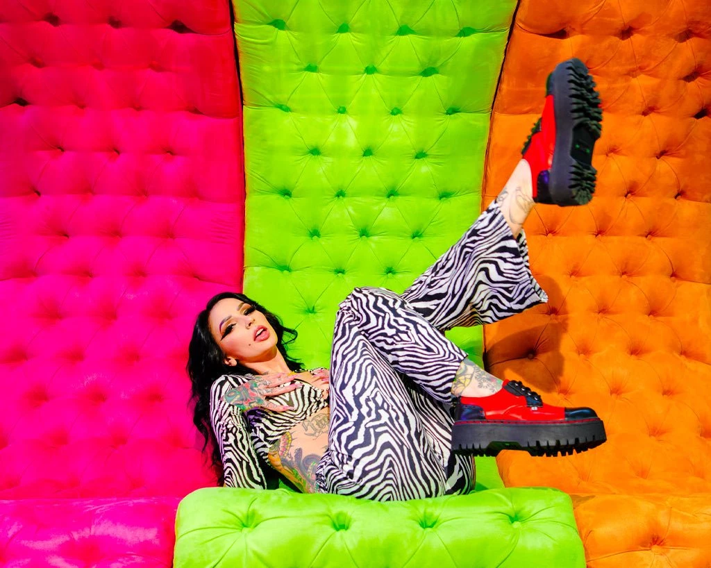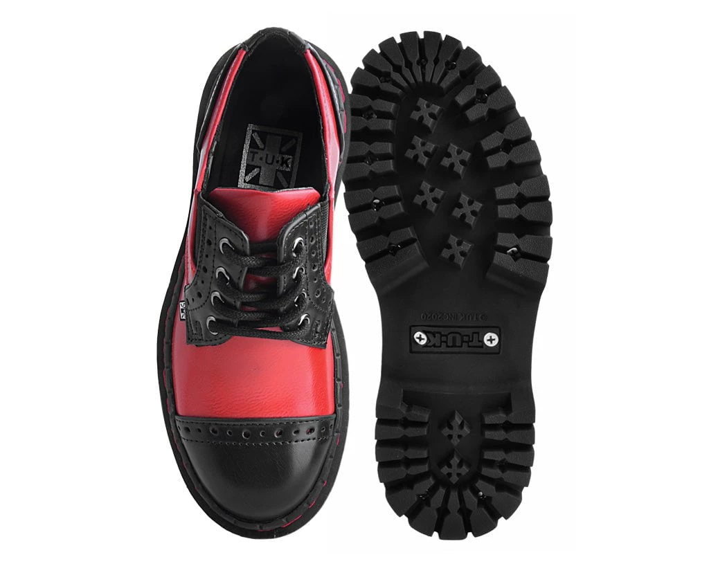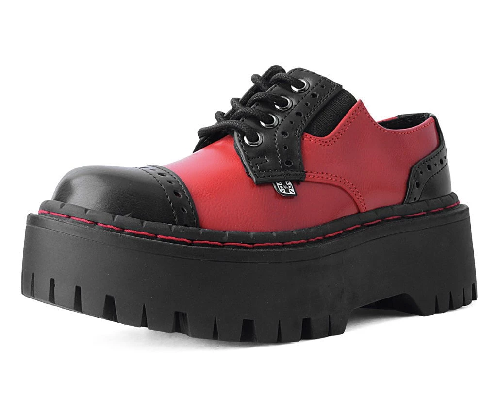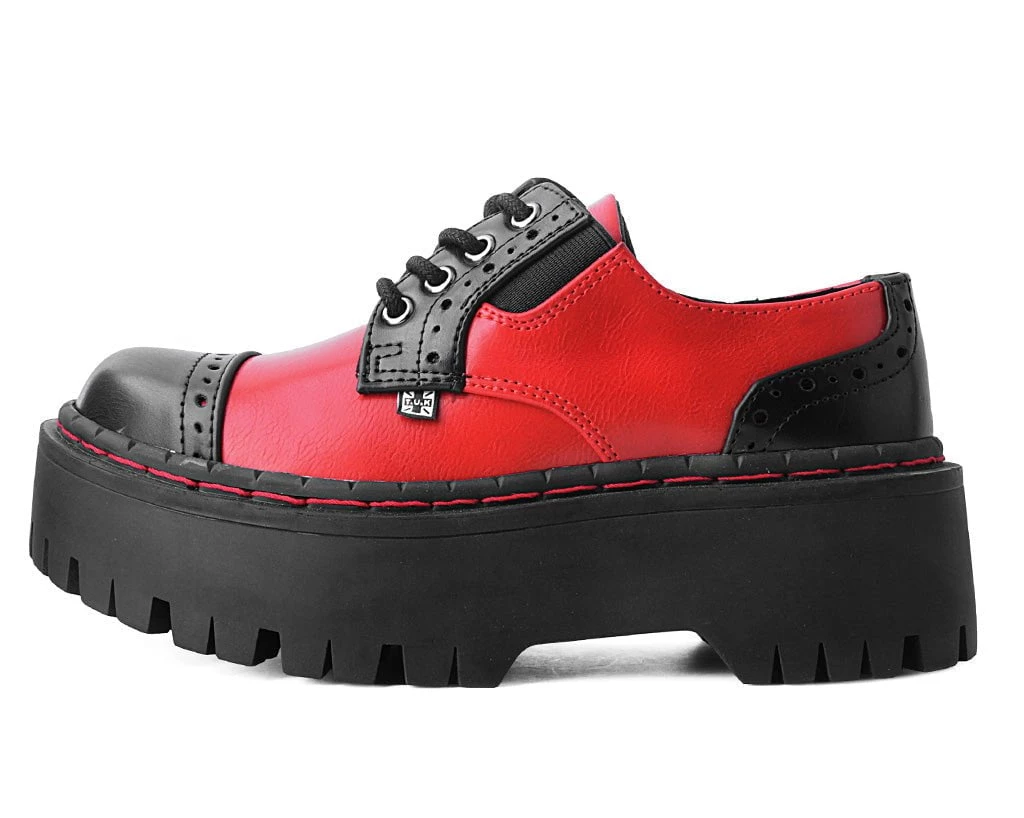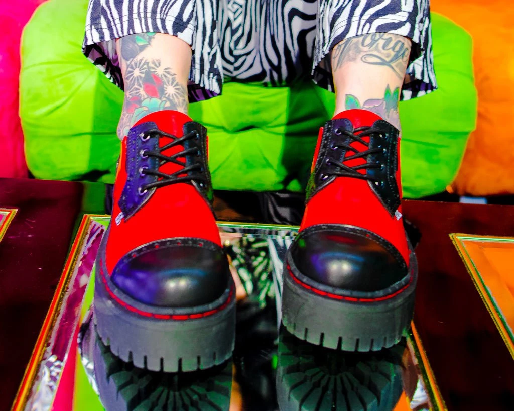 Chunky soles? We’re in. Has a black & red burnished upper made of our high quality TUKskin™ material — polishable synthetic faux leather that is both soft and breathable. Has a platform height that stands at 2” with screws in the sole for extra allure. Comes with removable memory foam insoles for added comfort.