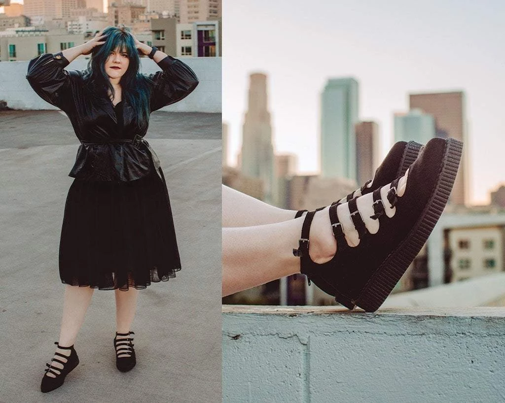 Get ready to turn heads. A versatile style that you can wear dancing or to the office. Features a pointed-shaped toe and multi-strap closure for an adjustable fit. A soft black faux suede sits on top of a low sole creeper platform that measures 1 1/4″ at the heel and 3/4″ in the front. Has a back zipper for easy on/off wear and removable memory foam padding for added comfort.