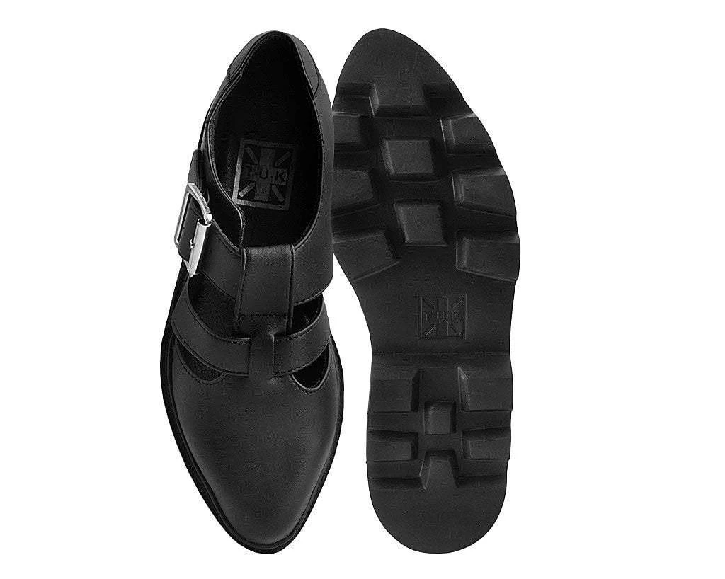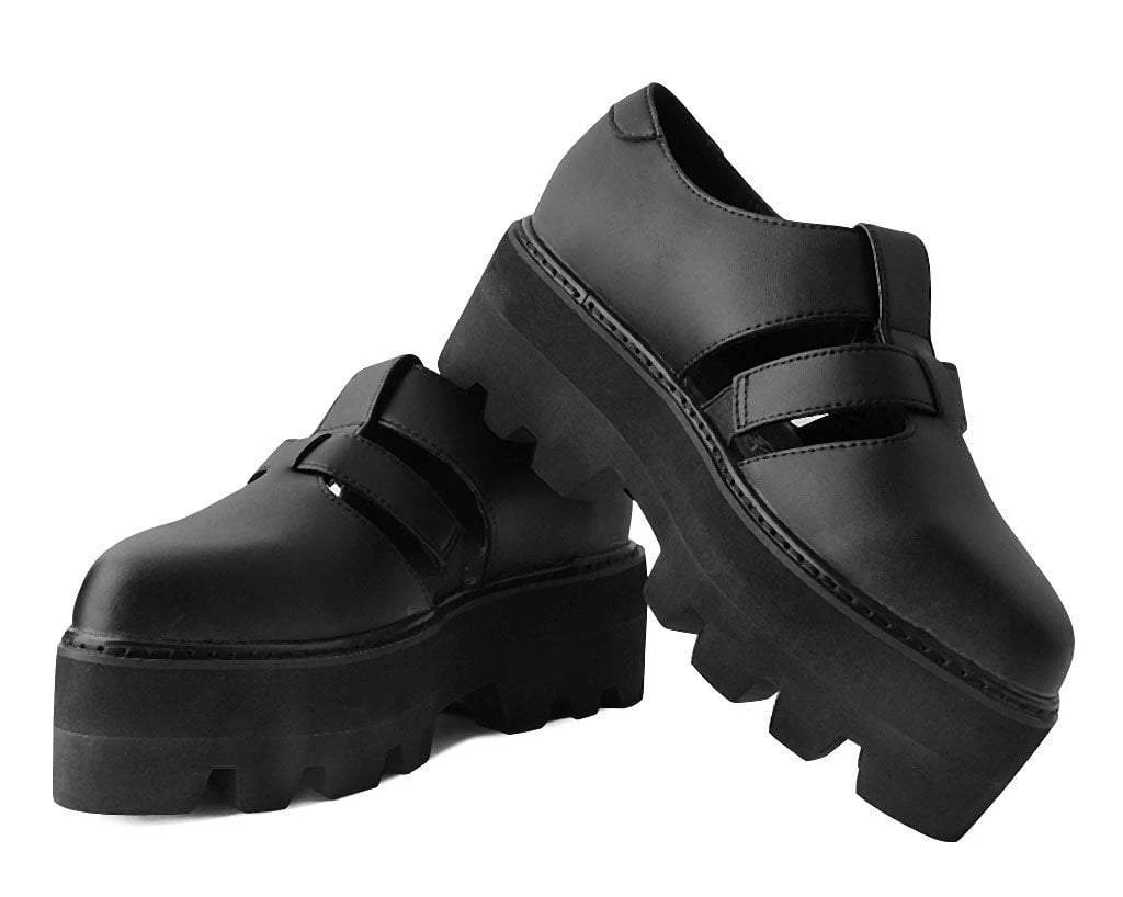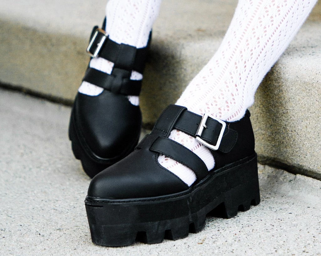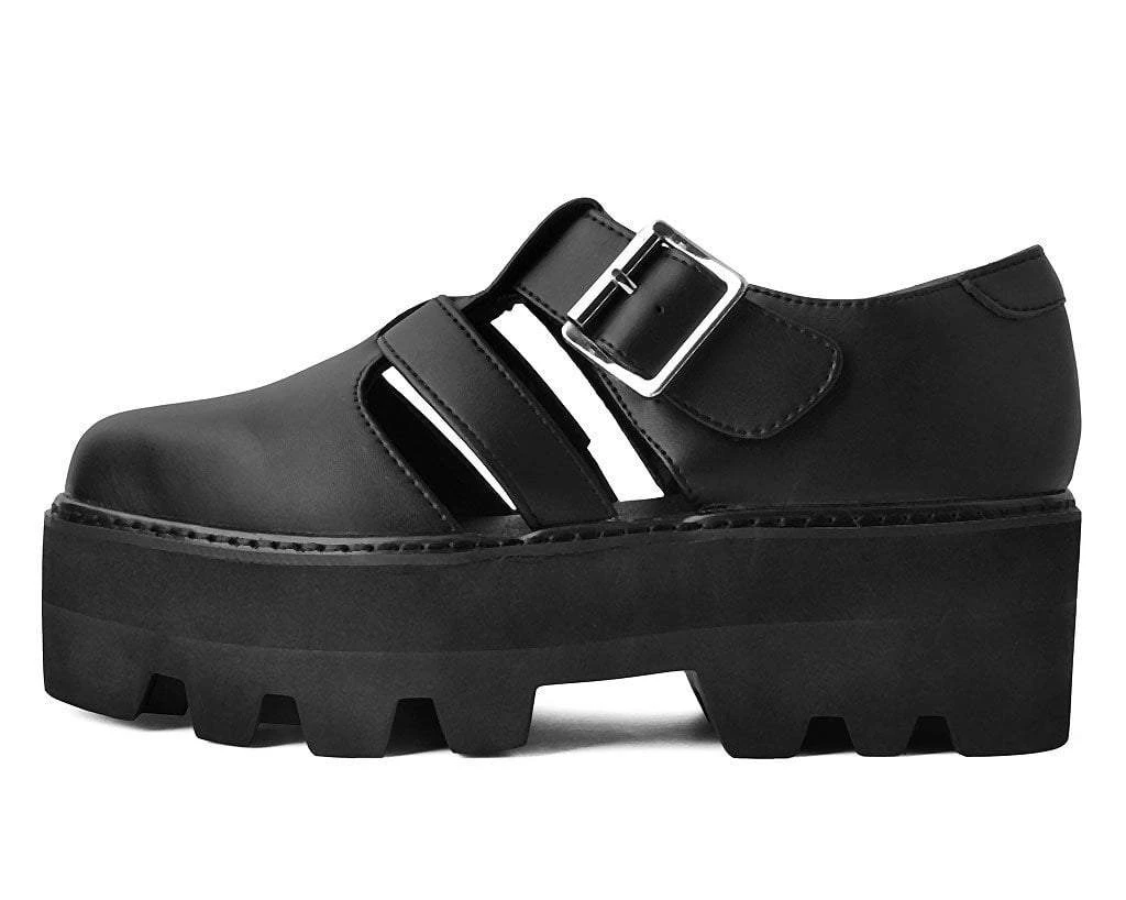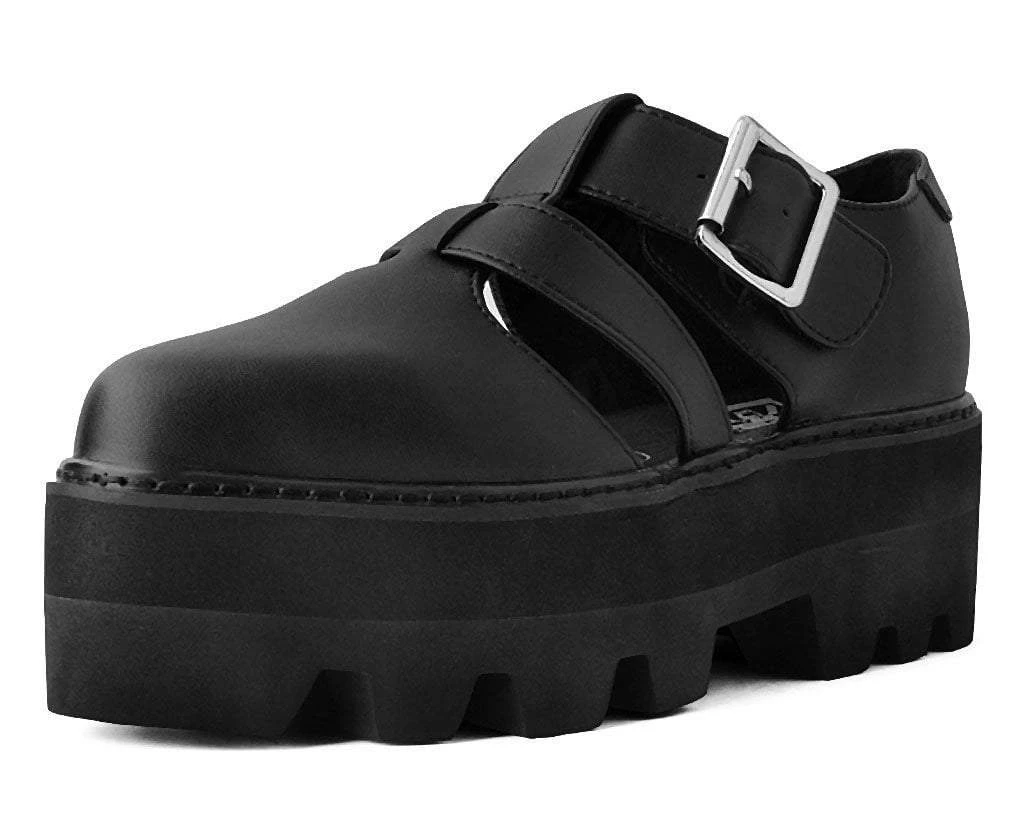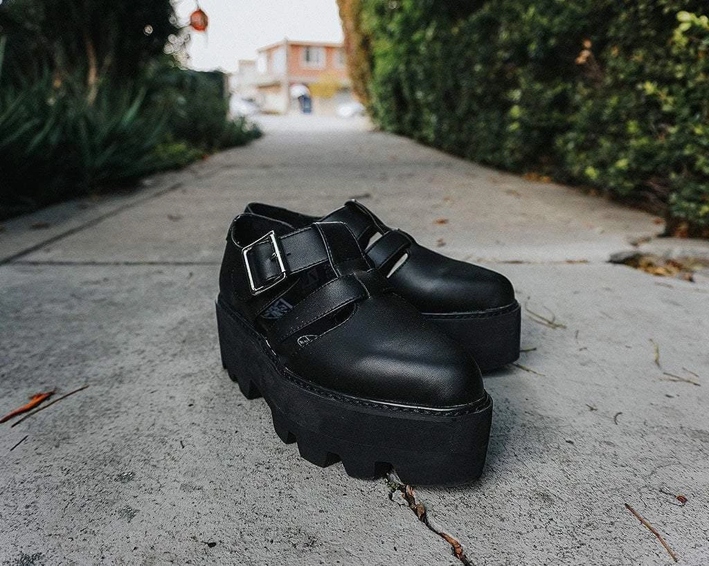 Stand tall & stand out from the crowd with these platform sandals. Features a pointed toe and all black upper with a big buckle for on and off. Has a sole height that is approximately 2 ¼” at the heel and 1 7/8” in the front. Has removable memory foam padding for added comfort.