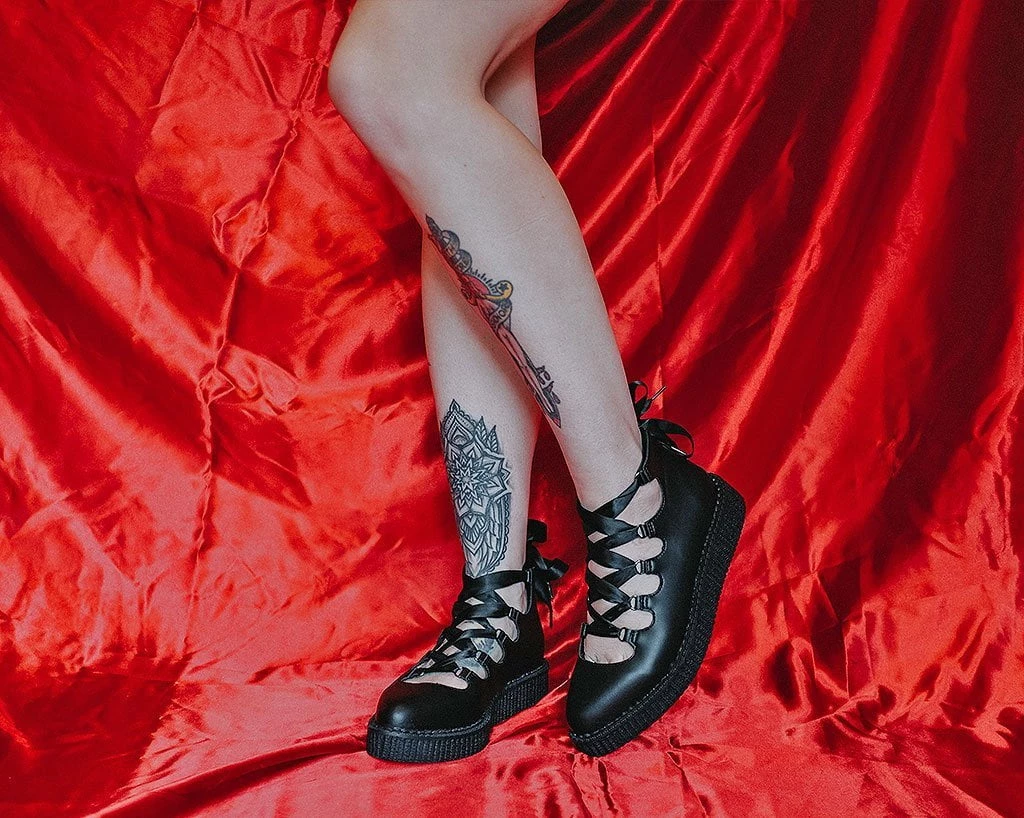 Shoes that make your daydreams come true. Made of our high quality TUKskin™ material — polishable synthetic faux leather that is both soft and breathable. Features a pointed-shaped toe and Ribbon twisted through loops for an adjustable fit. Sits on top of a low sole creeper platform that measures 1 ¼” at the heel and ¾” in the front. Has a back zipper for easy on/off wear and removable memory foam padding for added comfort.