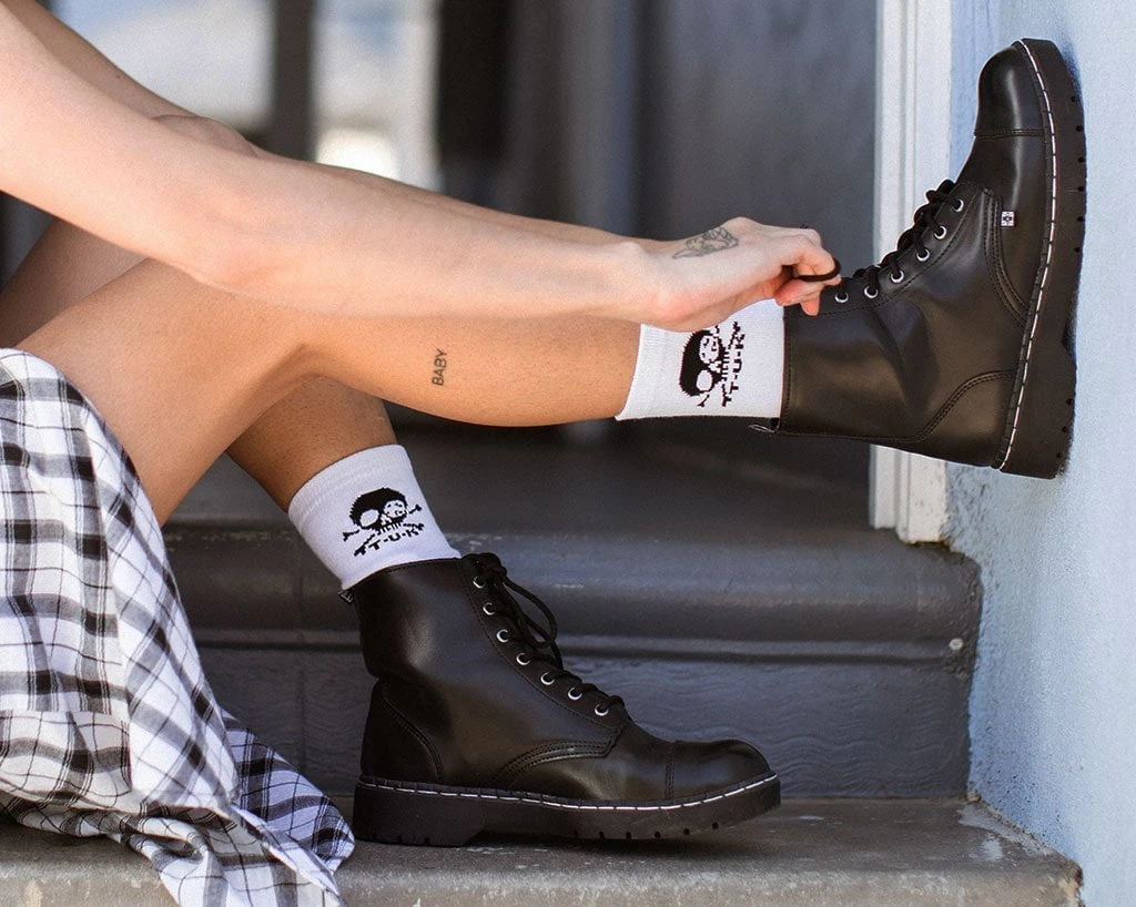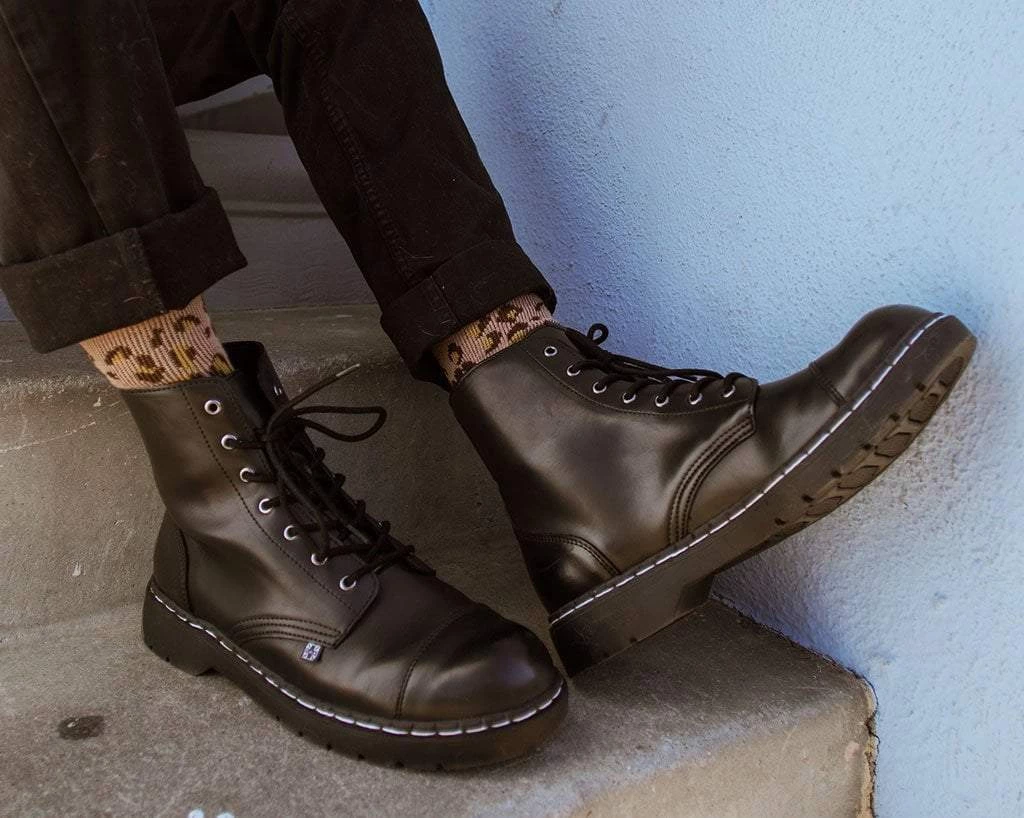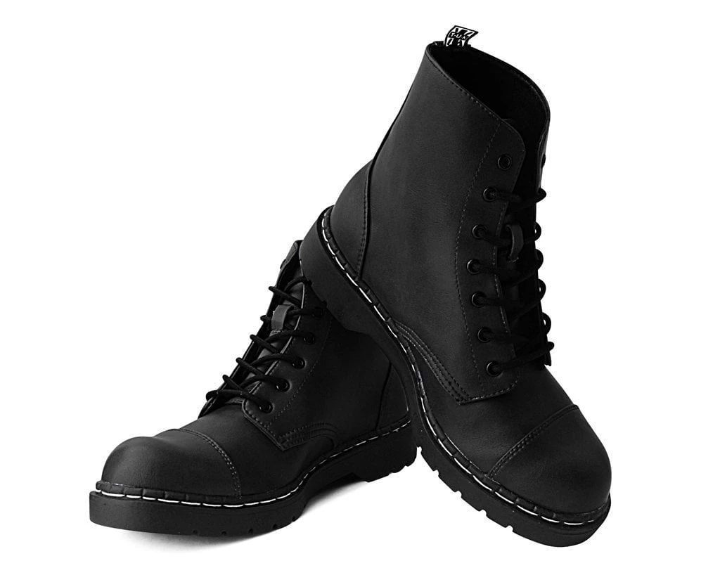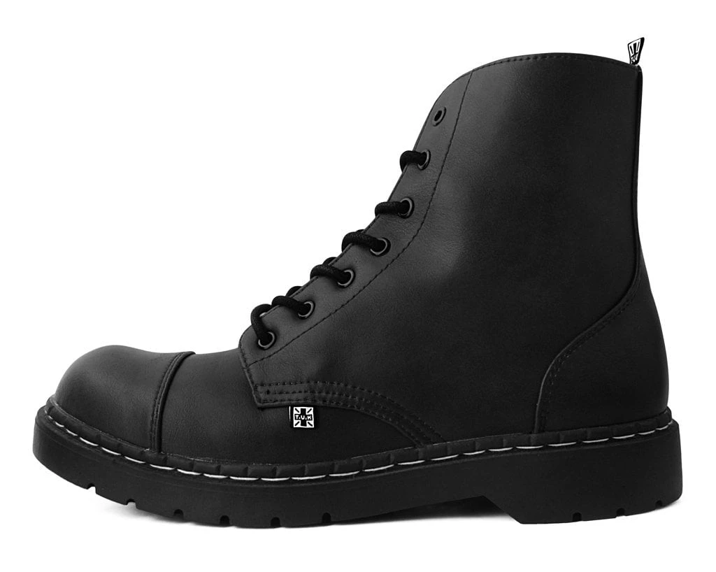 Boots for the rad. Features a vegan friendly, black faux leather upper with 7-eye lace-up detail. Has a 1” heel, removable memory foam padding for added comfort.