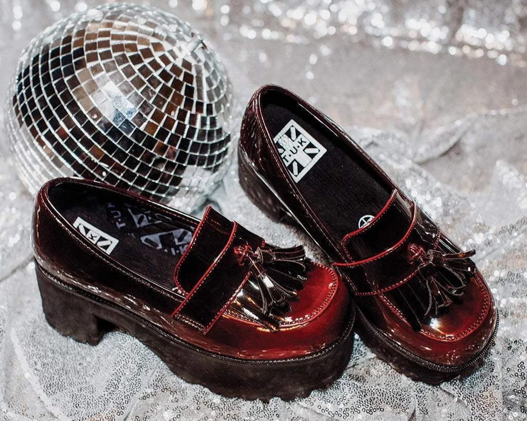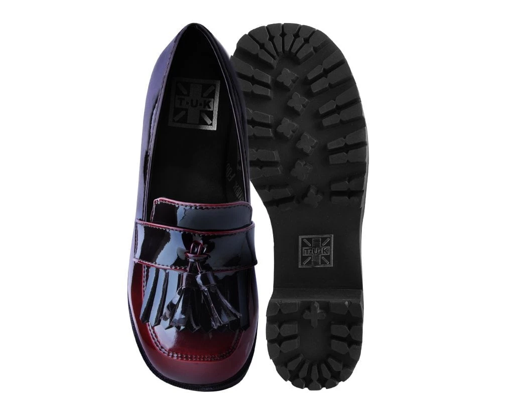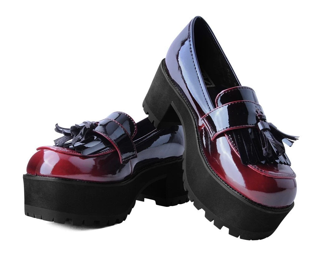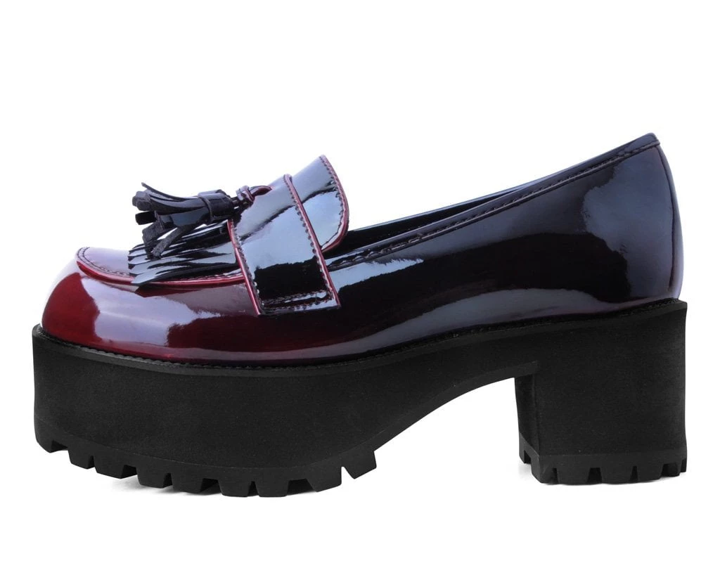 This seasons fav – a stylish loafer with a lift. These slip-on loafer heels have a burgundy gradient upper that gives the shoes styling versatility. Made of a vegan friendly upper and sits on top of sole that’s 2 1/2” heel and 1 3/4” front.