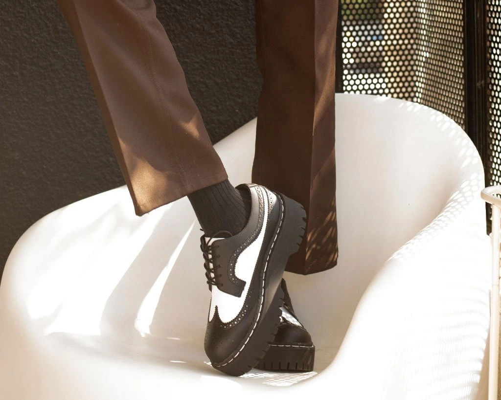 Chunky soles? We’re in. Has a black & white brogue upper made of our high quality TUKskin™ material — polishable synthetic faux leather that is both soft and breathable. Has a platform height that stands at 2” with screws in the sole for extra allure. Comes with removable memory foam insoles for added comfort.
