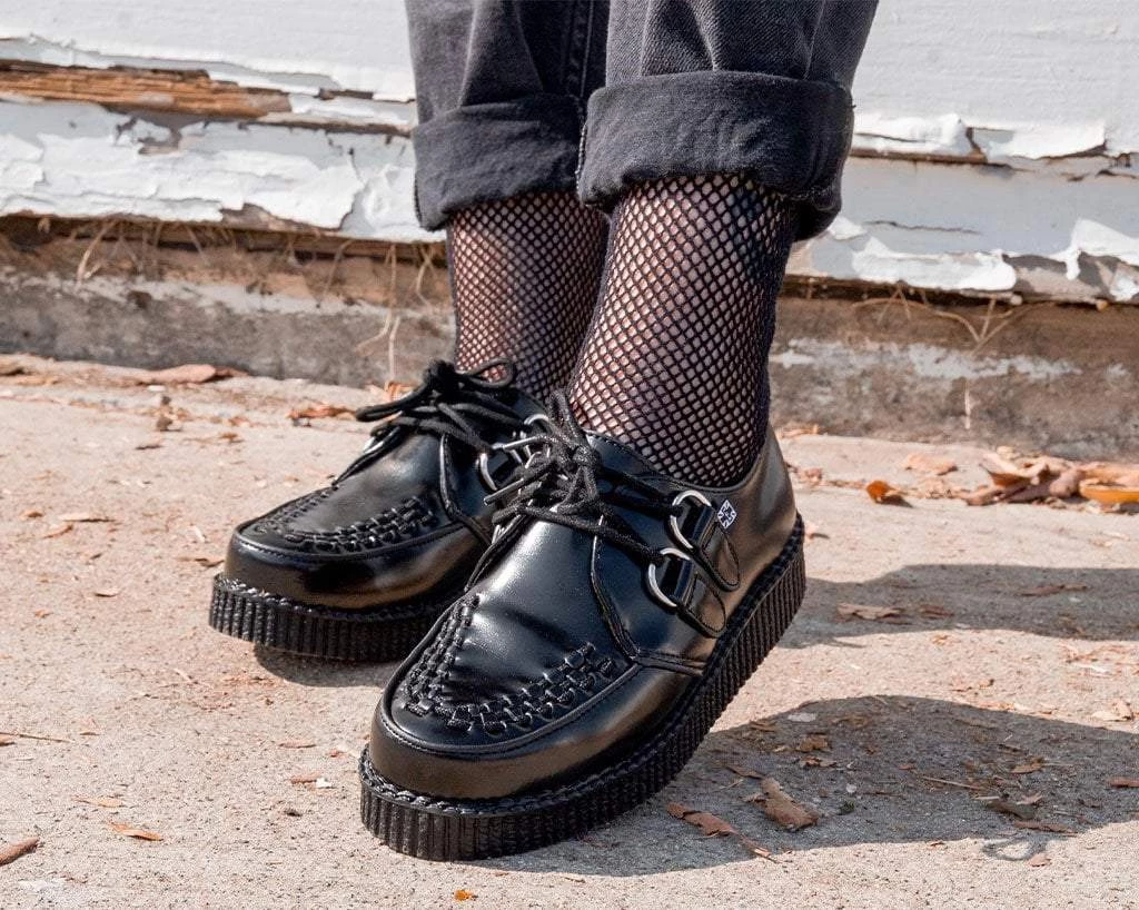 Iconic style that won’t quit. The timeless creeper that you know and love is back featuring a new sleeker sole that is more lightweight and flexible than ever. Features a low platform height that is approximately 1 ¼” at the heel and ¾” in the front and is made of a mixture of EVA and rubber that contributes to the sole’s bendability. Has a black leather upper and removable memory foam insoles for added comfort.