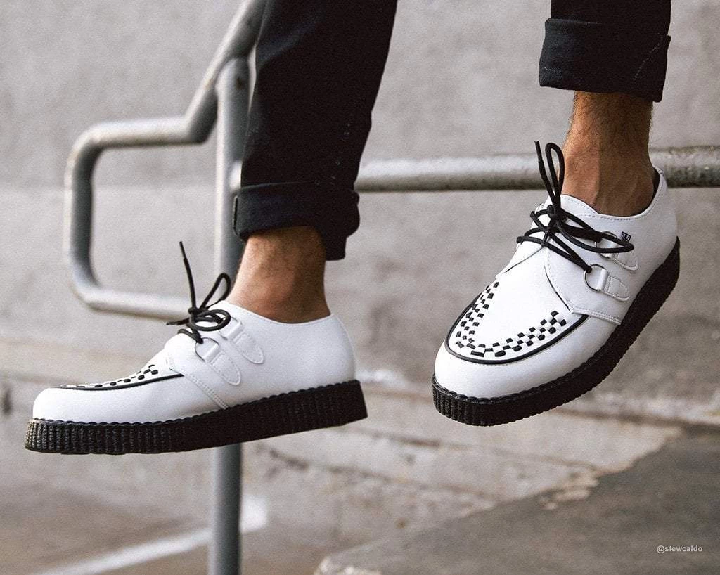 Iconic style that won’t quit. The timeless creeper that you know and love is back featuring a new sleeker sole that is more lightweight and flexible than ever. Features a low platform height that is approximately 1 ¼” at the heel and ¾” in the front and is made of a mixture of EVA and rubber that contributes to the sole’s bendability. Has an all-white upper made of our high quality TUKskin™ material — polishable synthetic faux leather that is both soft and breathable. Comes with removable memory foam insoles for added comfort.