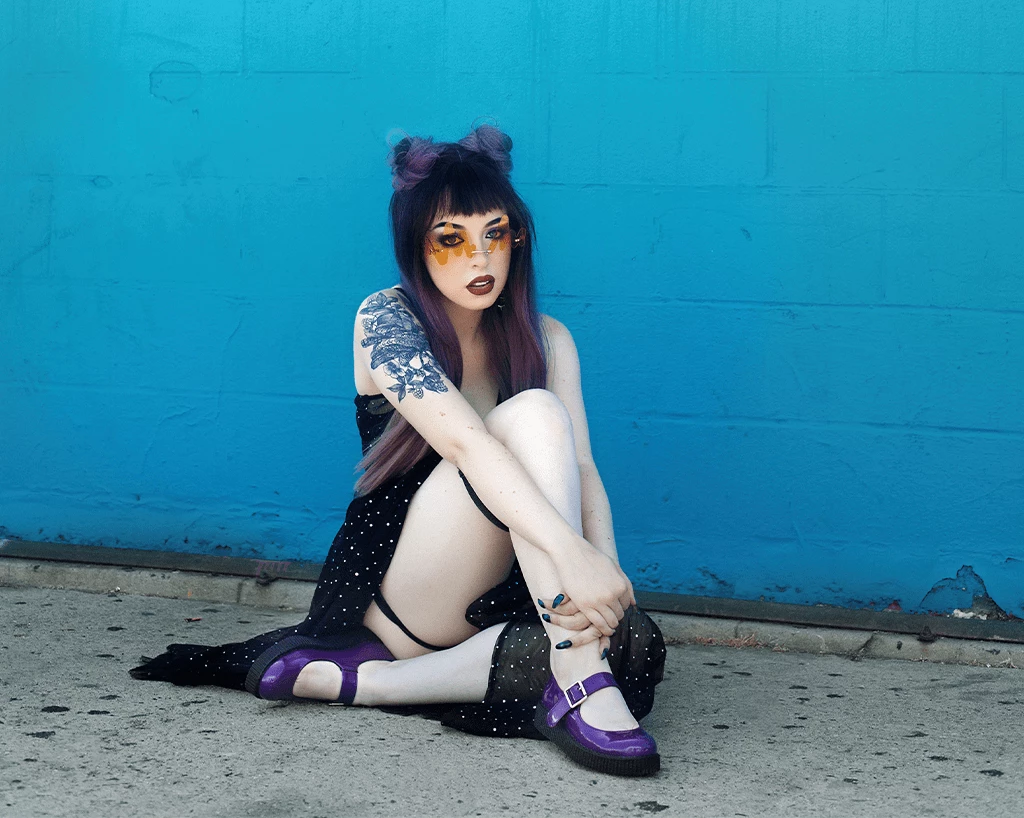 Everything’s better in purple. Features a low platform height that is approximately 1 ¼” at the heel and ¾” in the front and is made of a mixture of EVA and rubber that contributes to the sole’s bendability. Has a purple metallic upper made of our high quality TUKskin™ material — polishable synthetic faux leather that is both soft and breathable. Comes with removable memory foam insoles for added comfort.