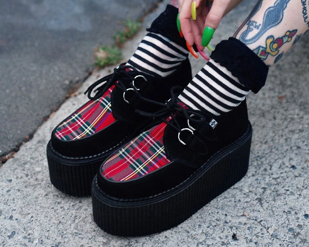 Mad for plaid. To prove it wasn’t just a phase throw on these bold creeper platforms & get to stomping. These bad boys’ have a black suede upper that sits on our lightweight VIVA stratocreeper sole that has a platform height approximately 3” at the heel and 2.5” in the front. Includes removable memory foam padding for extra comfort and inside zipper closure for easy on/off.