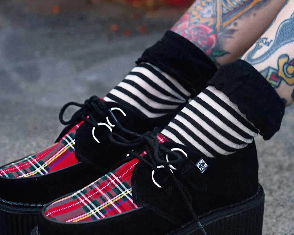 Read between the lines. Features black & sheer stripes with a toe and heel pad. Made with polyester, nylon and spandex.