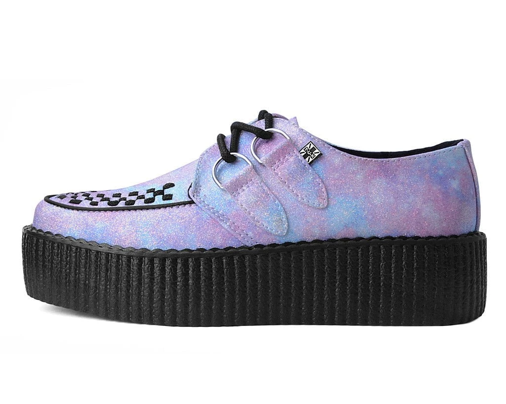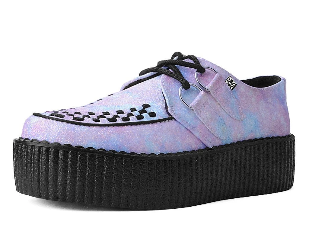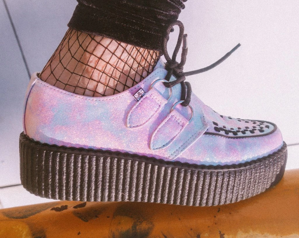 Our love language is new shoes. These creepers feature a multi-color dye glitter upper that will keep you shining on all night long. Has a lightweight VIVA mondo sole that is approximately 1 3/4″ at the heel and 1 1/4″ in the front. Has removable memory foam padding for added comfort.