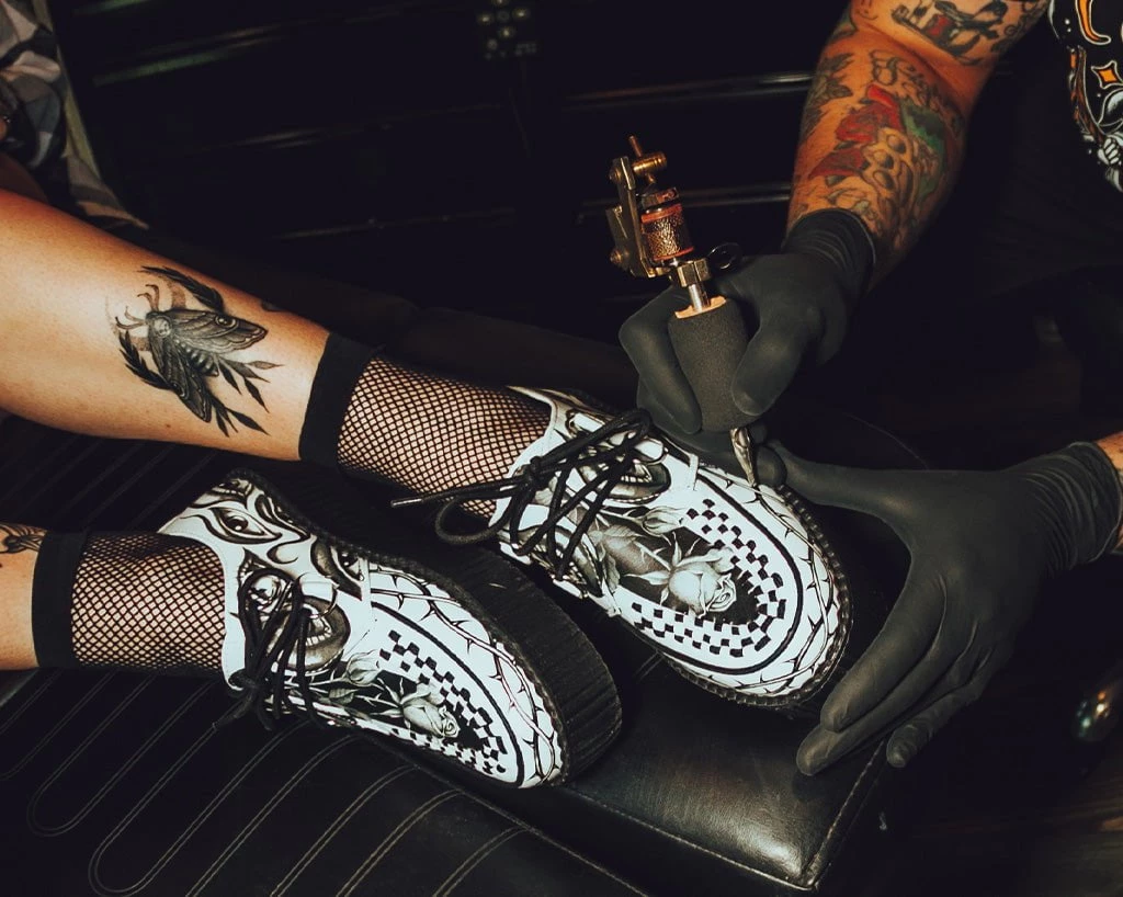 We wanted to do our part in supporting local businesses & artists during the pandemic. We teamed up with various tattoo artists and used our platform to showcase their talents on our iconic creepers. Using our shoes as their canvas, Tattoo Creepers were born. Each month a new artist collaboration will be released at limited quantities you won’t want to miss. Our loyal customers have continued to support us, so we wanted to continue to support our community.