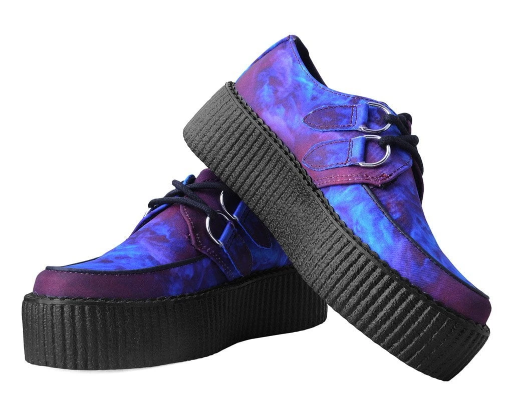 Keep your head in the clouds with these cloudy creepers. Has blue & purple cloud print upper made of a vegan friendly material. Features lace-up fastening and our lightweight VIVA mondo sole that is approximately 1 ¾” at the heel and 1 ¼” in the front. Has removable memory foam padding for added comfort.